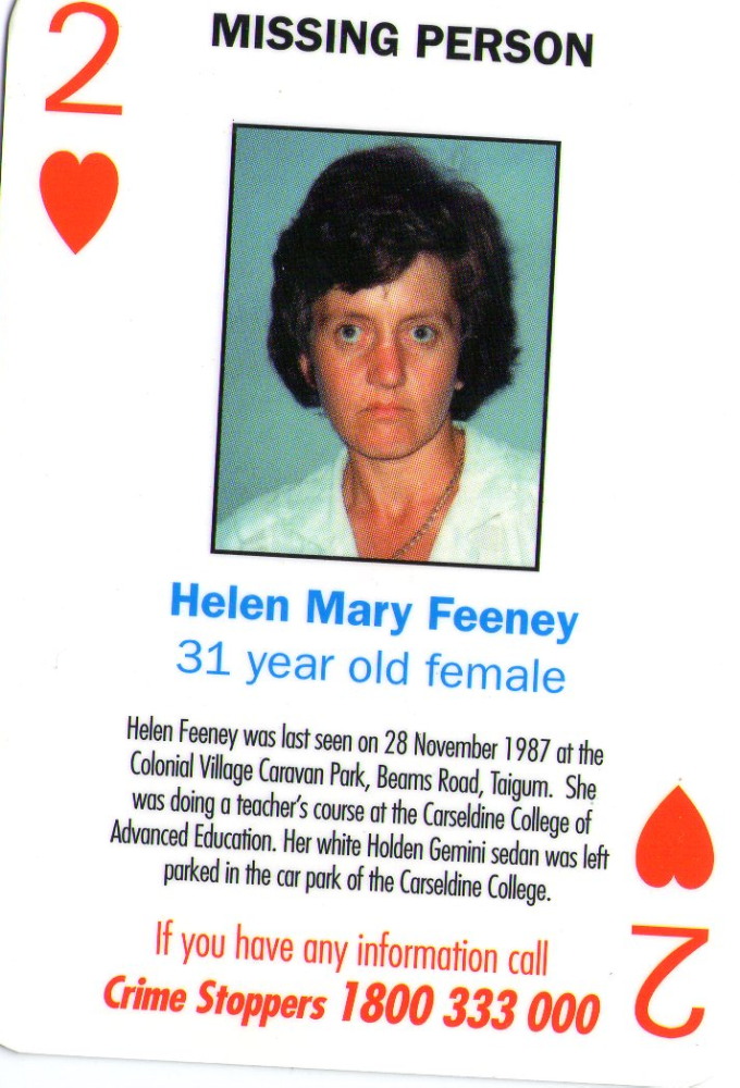 Detectives believed the notorious criminal may have known the fate of several unsolved cases involving young girls and women across Australia, including the death of Helen Mary Feeney, a 31-year-old student, between October 29 and December 1, 1987.