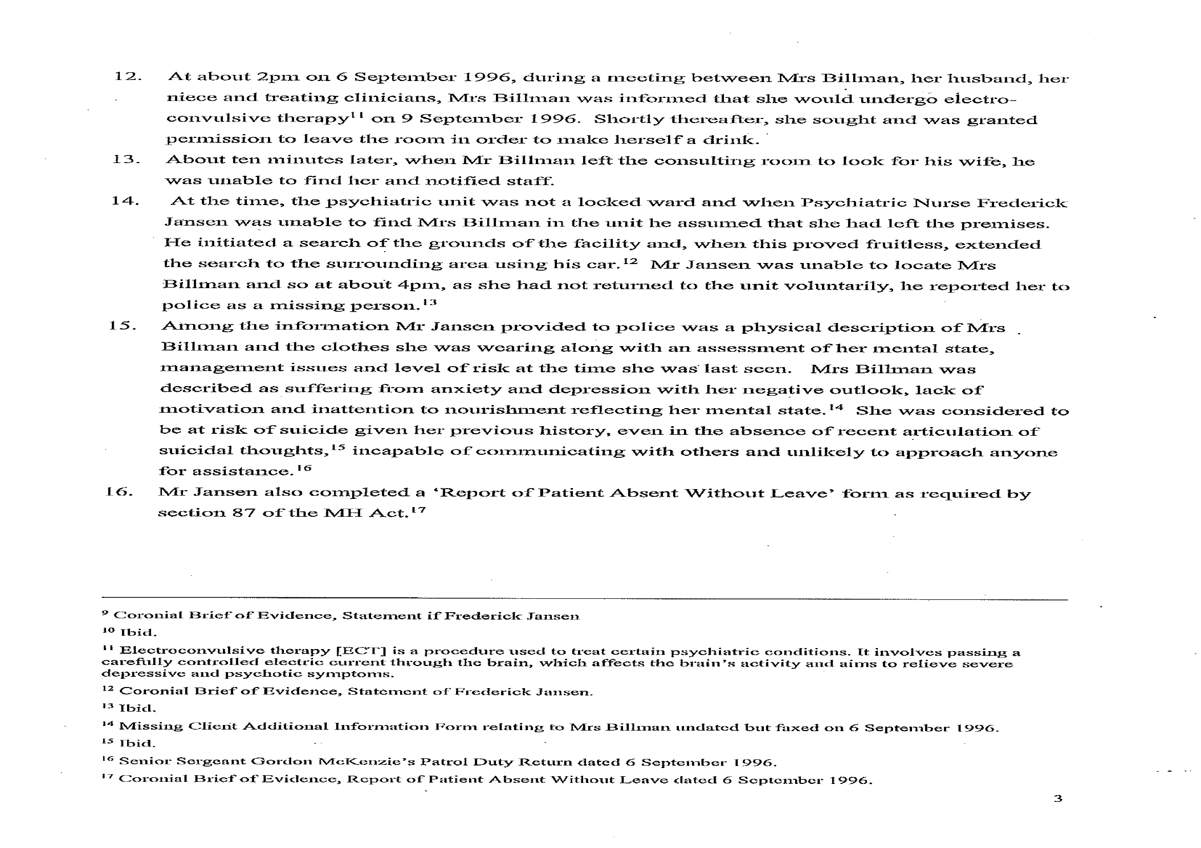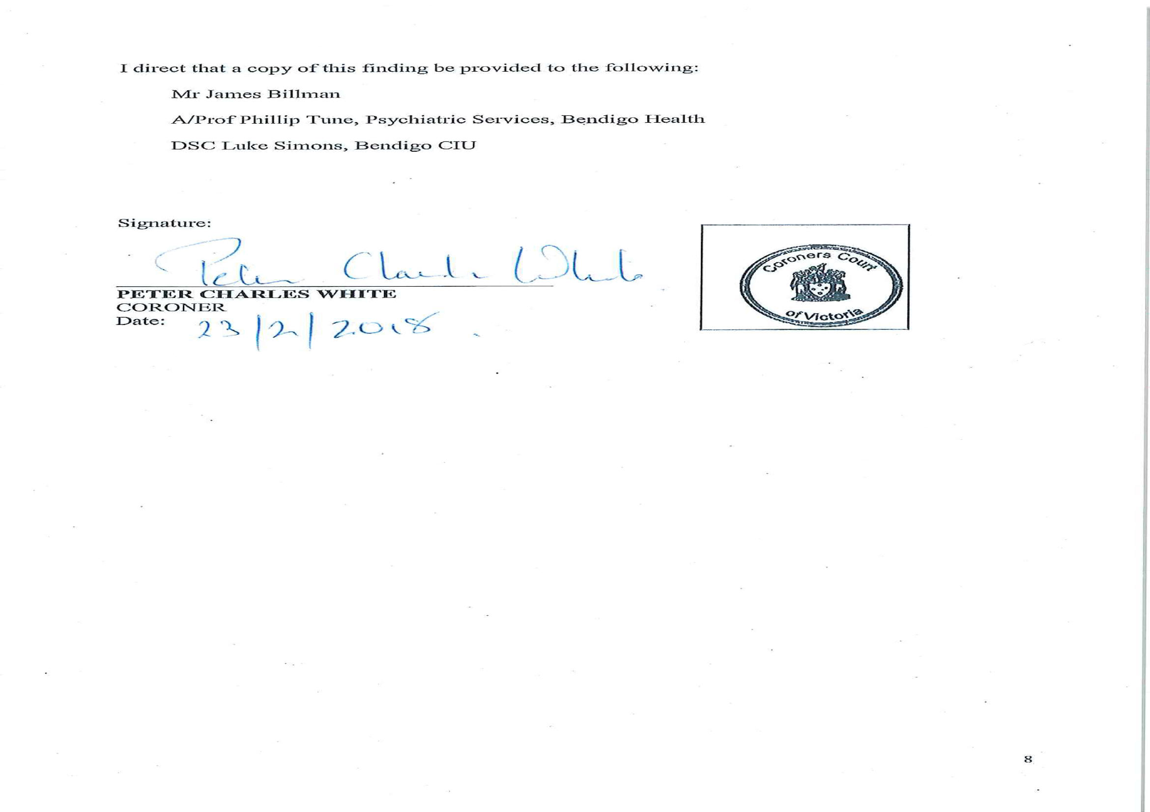 In mid-2017, twenty years after Mrs Billman’s disappearance, Coroner White was asked to provide a finding on her suspected death.