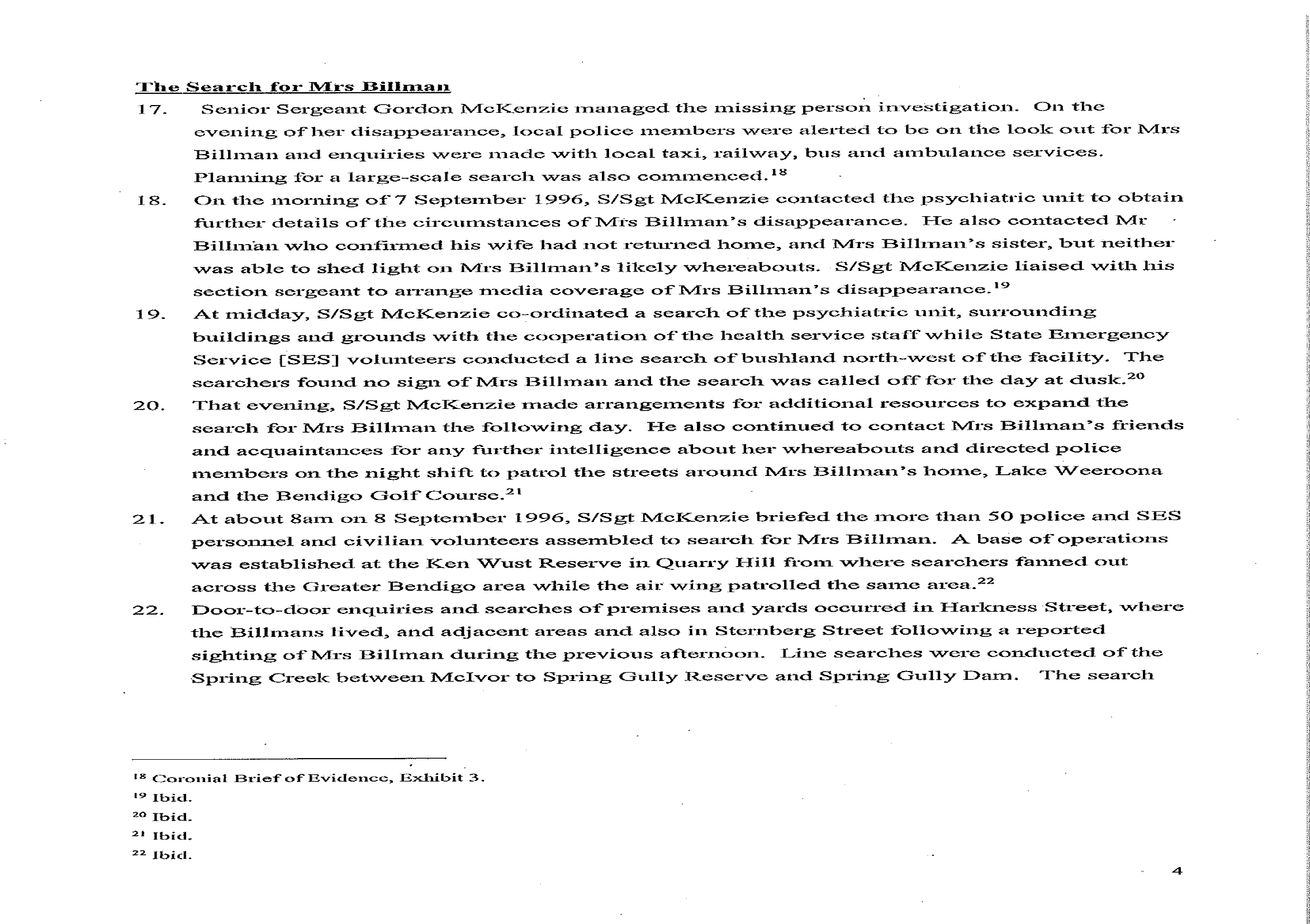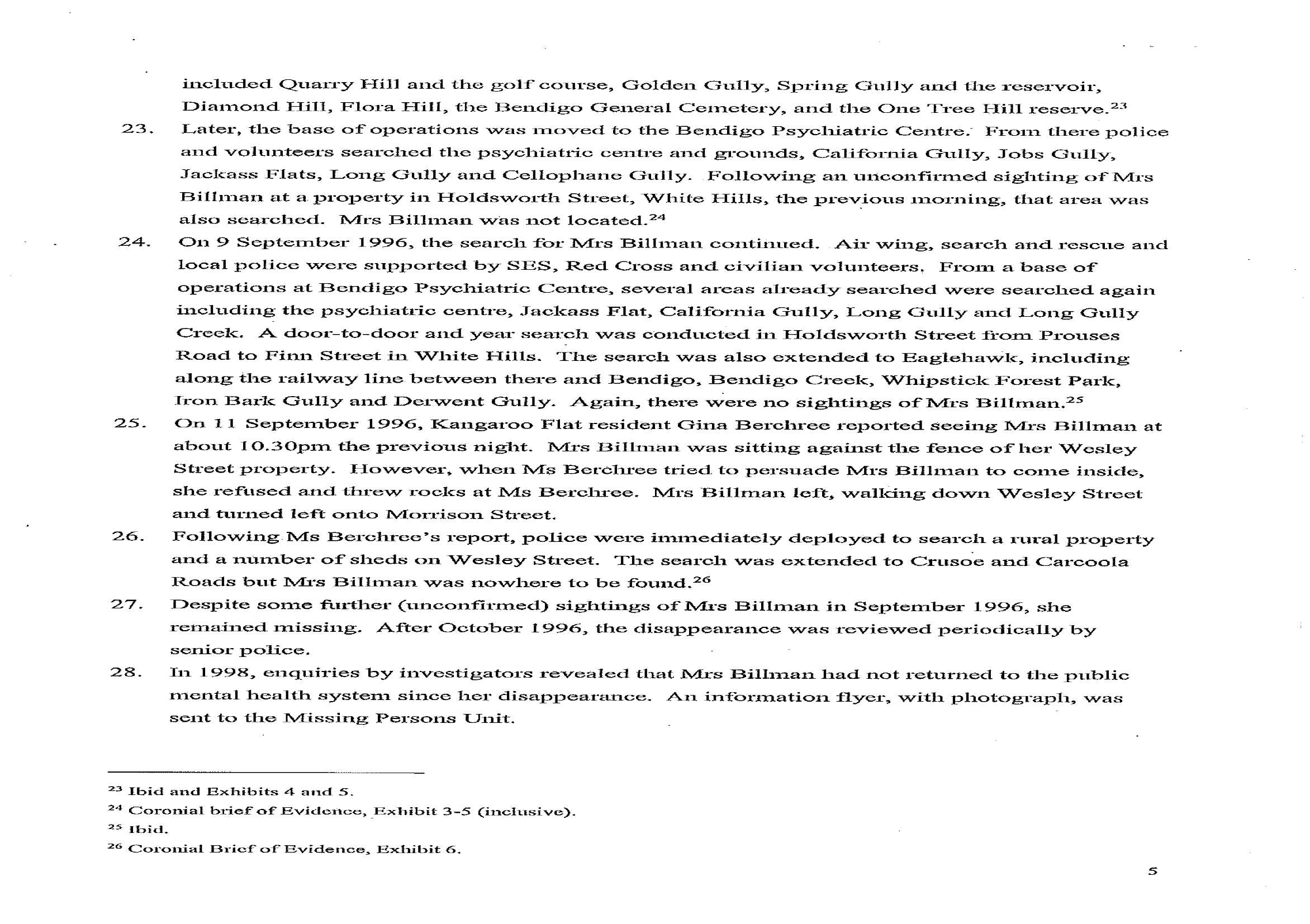 Coroner White also suggested efforts made by Victoria Police to locate Mrs Billman were “reasonable in the circumstances”.