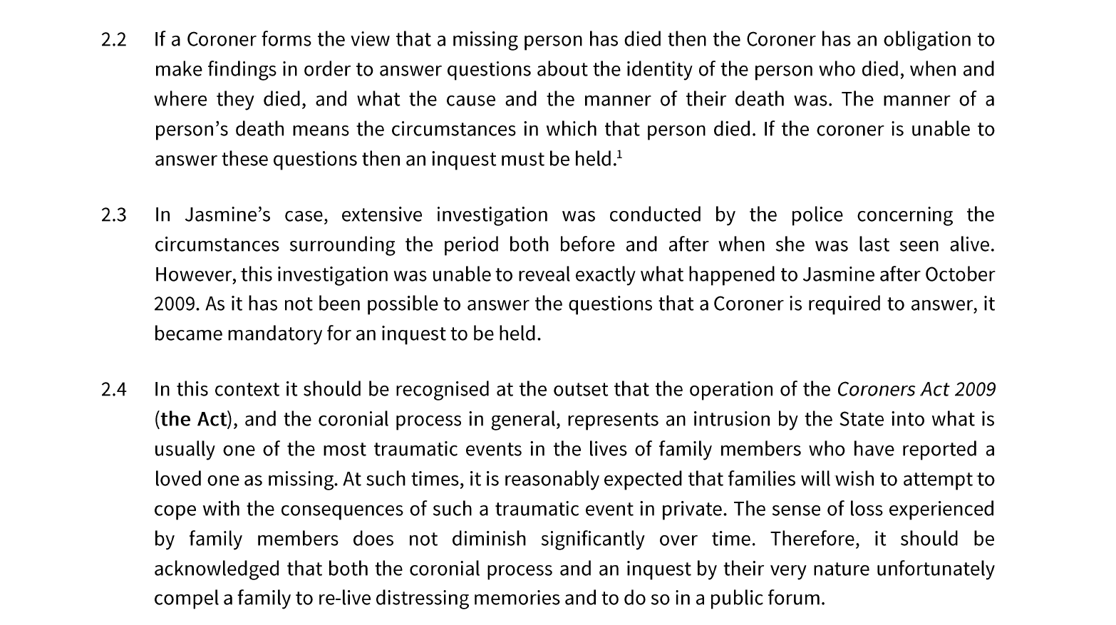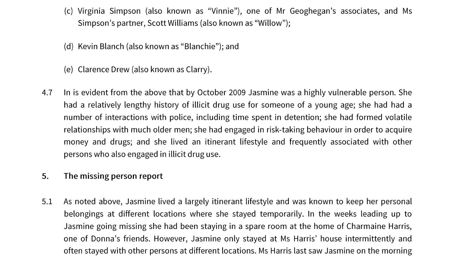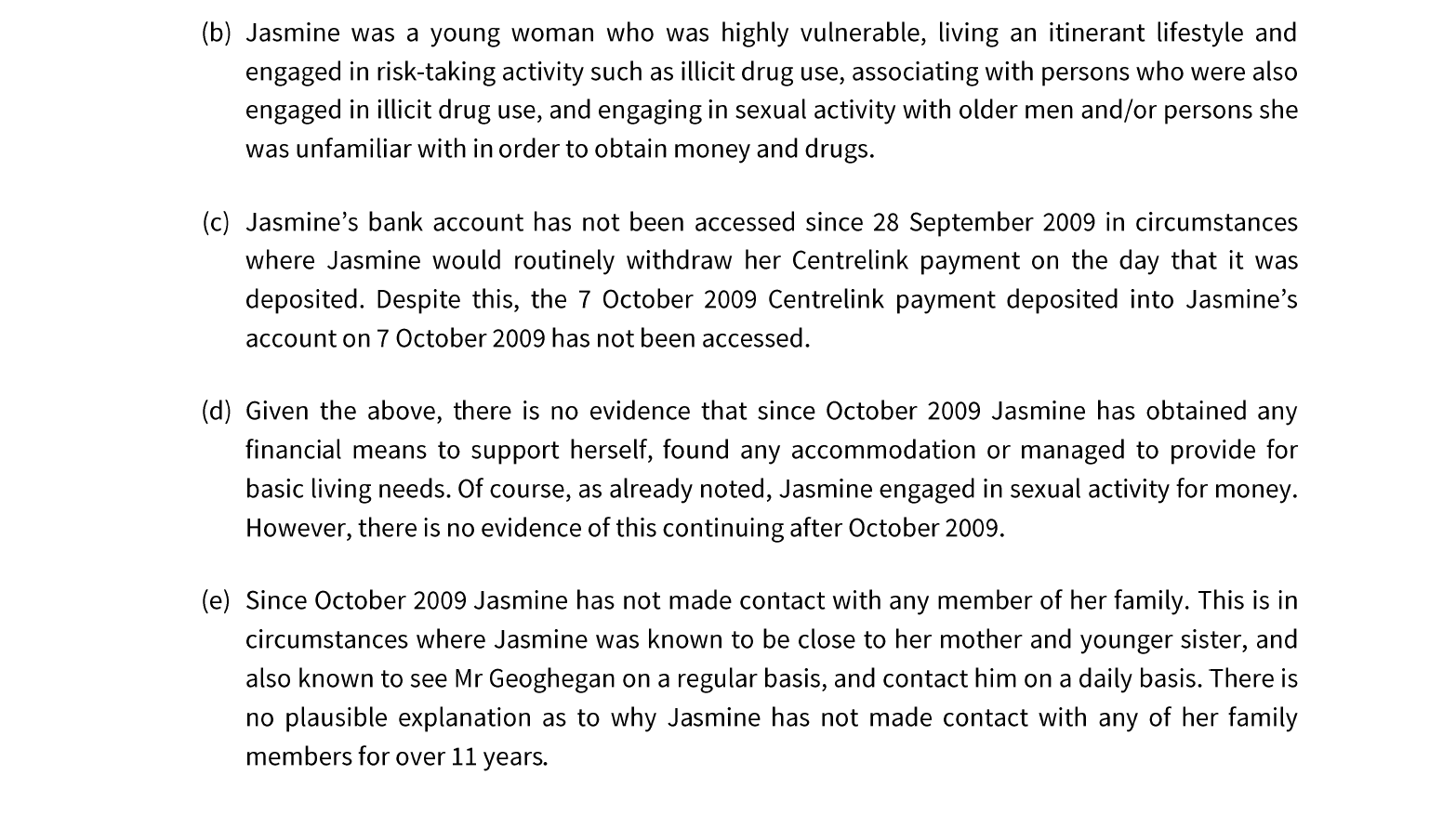 Ms Geoghagan said she feared there could be people in the community who knew about Jasmine's disappearance but were not coming forward for various reasons.