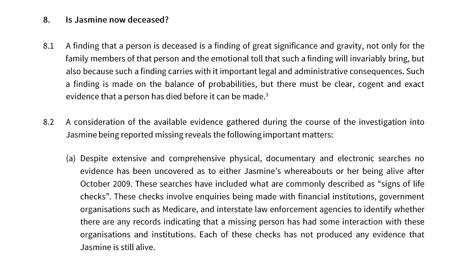 "Jasmine has not accessed her bank accounts since she was last seen and inquiries nationwide have found no trace of her," Snr Const Keam said.