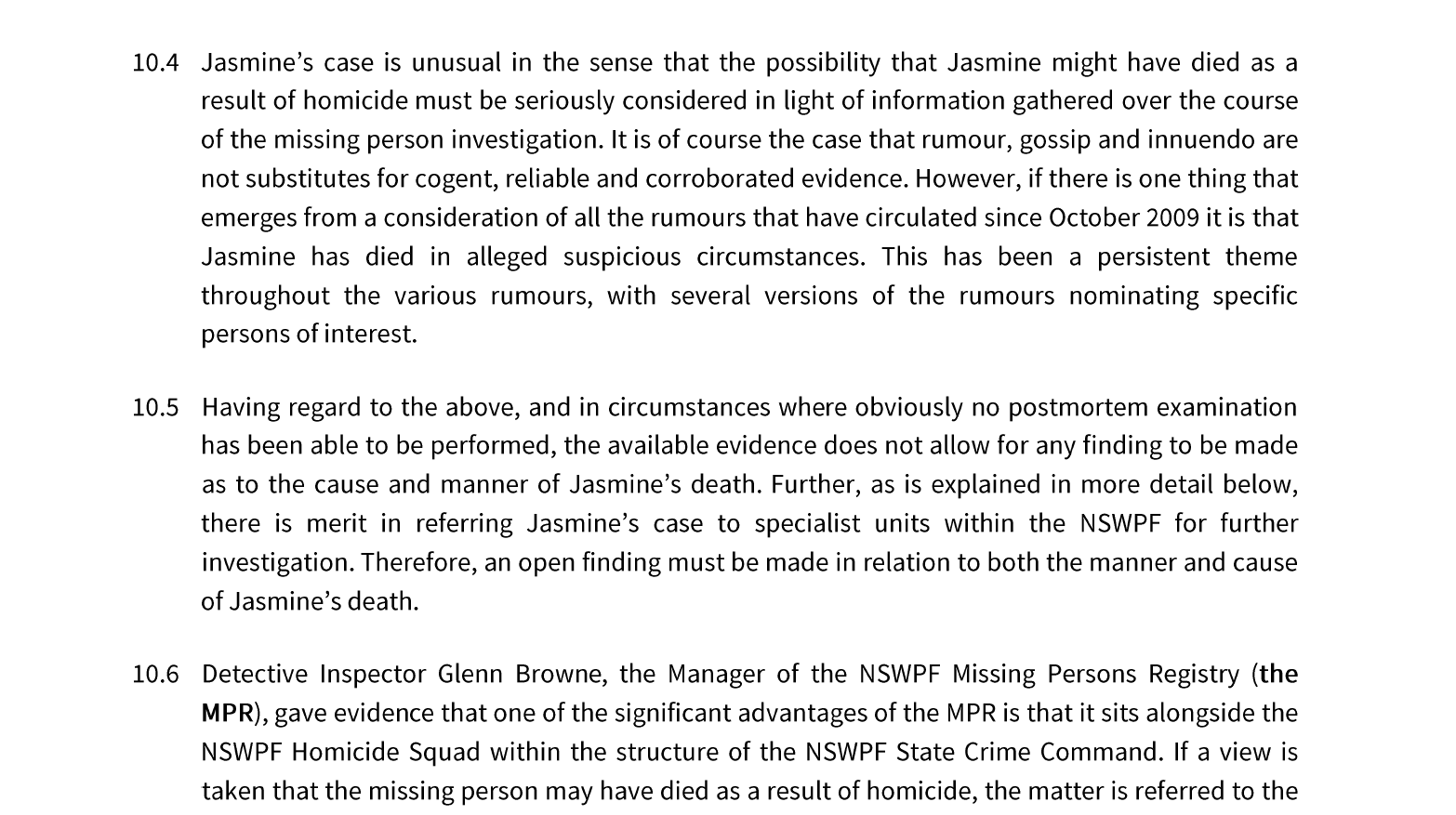 Meanwhile, police have stepped up the investigation with the creation of Strikeforce Sobroan which increases resources in the search for Jasmine. Leading the investigation, Detective Mick Lister said police were looking at video footage captured on various surveillance devices which may help identify Jasmine’s movements.