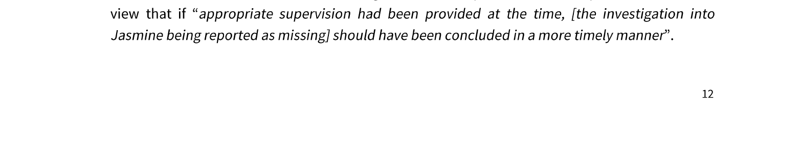 "There doesn't appear to have been anything happening in Jasmine's life at this time that would cause her to disappear."