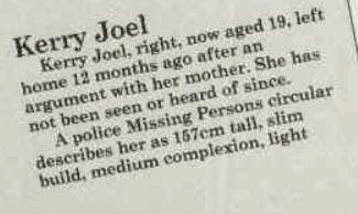 On 1 February 1980 17 year old Kerry Joel left her home in Caringbah, NSW and has not been seen by family and friends since then. Kerry is believed to have met with her friend Elaine Johnson who also went missing on the same date from her Kurnell home. Both Kerry and Elaine were reported missing in February 1980. Extensive enquiries conducted throughout Australia over, many years, have been unable to locate the women. If you have information that may assist police to locate Kerry please call Crime Stoppers on 1800 333 000. In the company of Elaine JOHNSON |