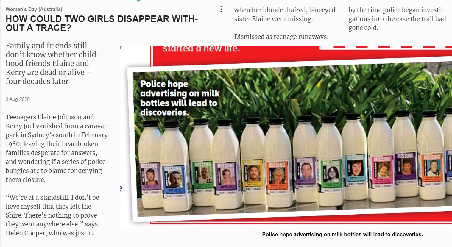 WHEN Sutherland Shire teenagers Kerry Joel and Elaine Johnson went missing more than 33 years ago, Malcolm Fraser was Australia's prime minister and Azaria Chamberlain hadn't even been born.