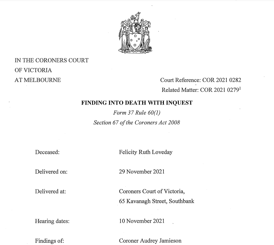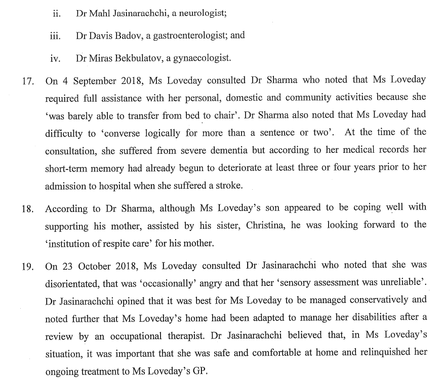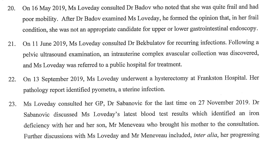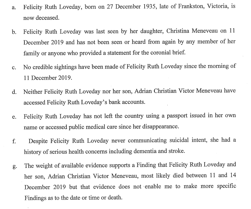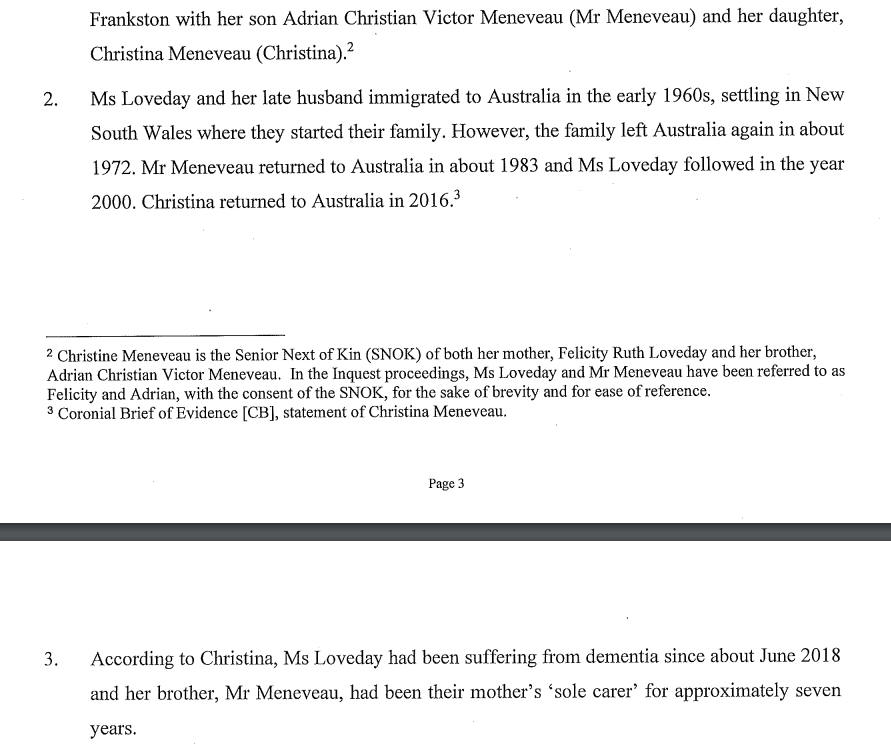 Ms Loveday had dementia and suffered a stroke in 2018. Mr Meneveau had a history of mental illness.