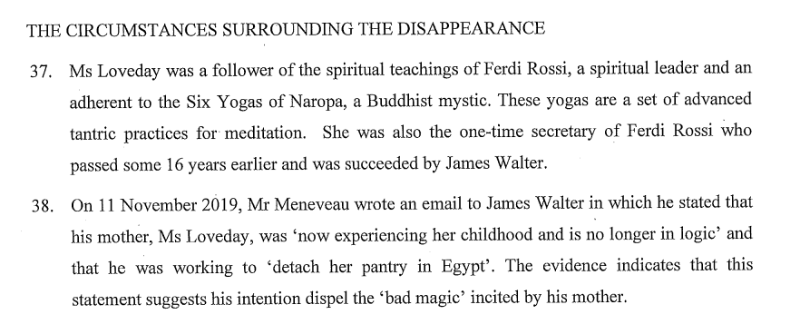 Ms Loveday practised Buddhist mysticism for the greater part of her life, while Mr Meneveau followed her beliefs while acting as her full-time carer for the last seven years of their lives.