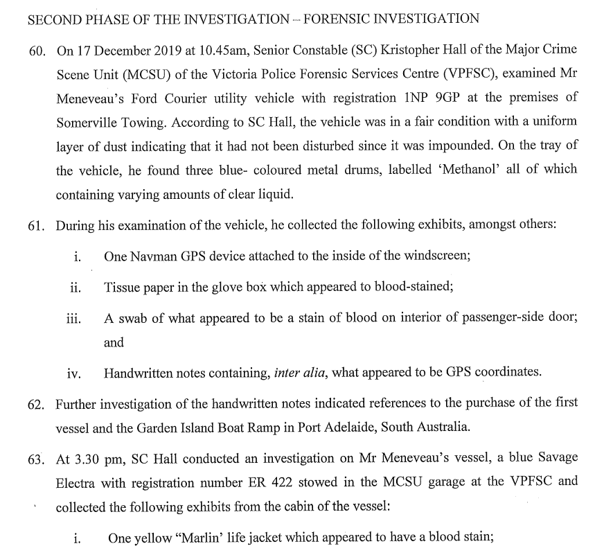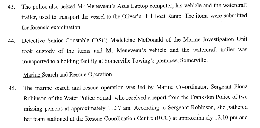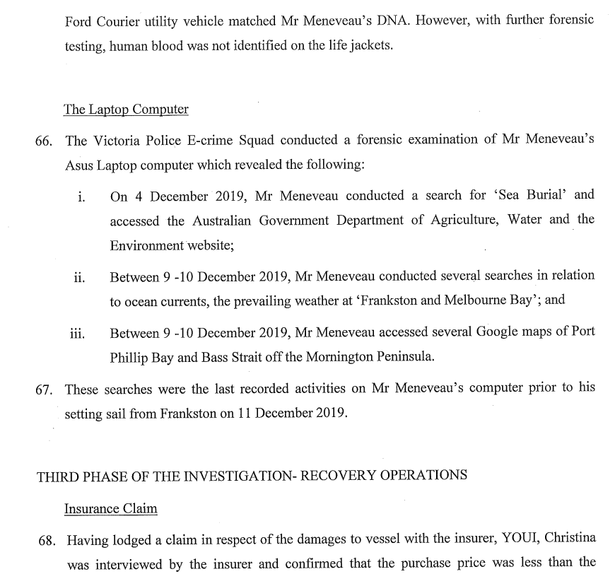 Detective Chris Obst said in the days before the duo disappeared, searches for “sea burial” had been made on Meneveau’s computer.