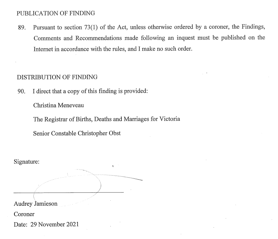 The inquest heard Ms Meneveau made a claim on the insurance policy in January last year and was paid out the insured value.