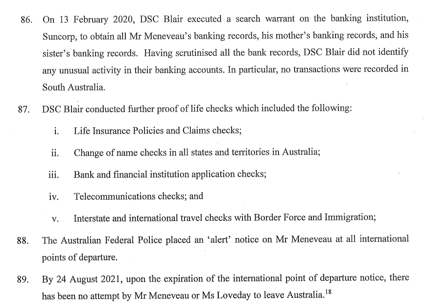 Obst said there were exhaustive proof of life checks for both Loveday and Menevea - who had talked about living off the grid after his mother’s death - but nothing has been found.