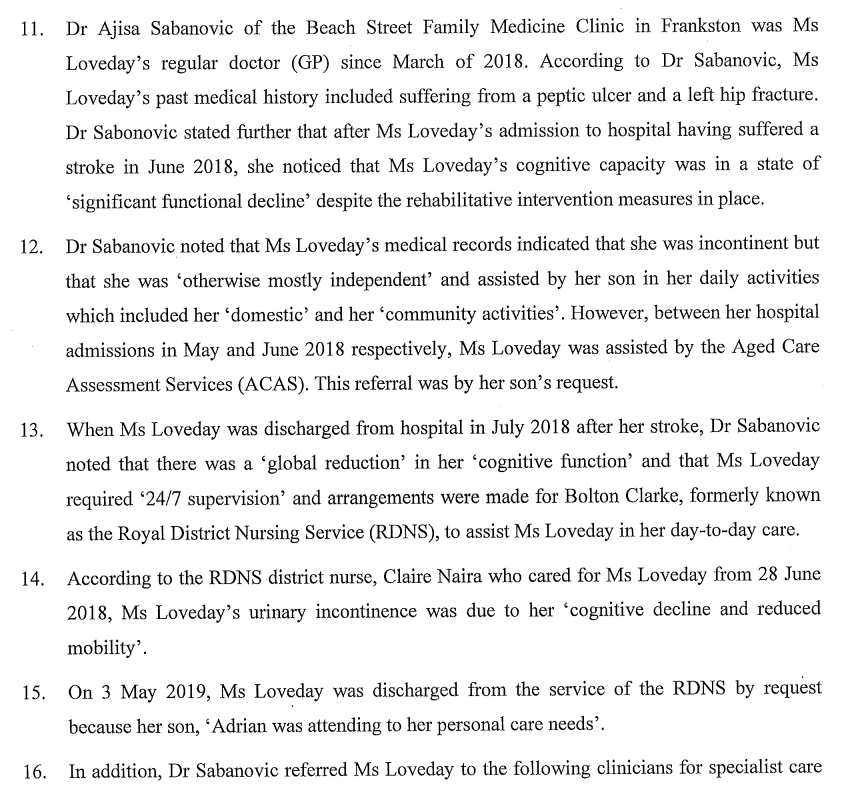 Ms Loveday was known on the Gold Coast for participating in local choir and yoga groups, but suffered severe dementia and moved to Melbourne to be with her two children.