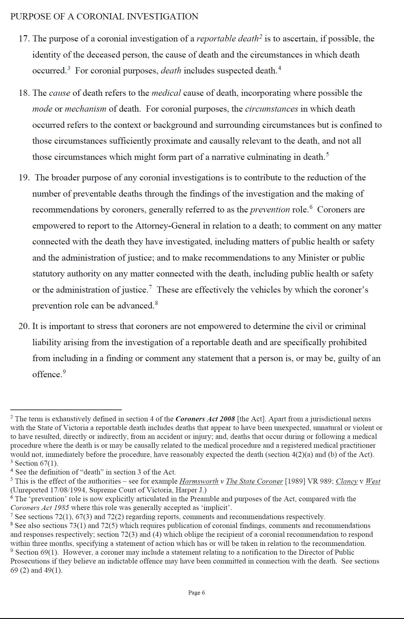 A full brief was prepared for the Coroner.