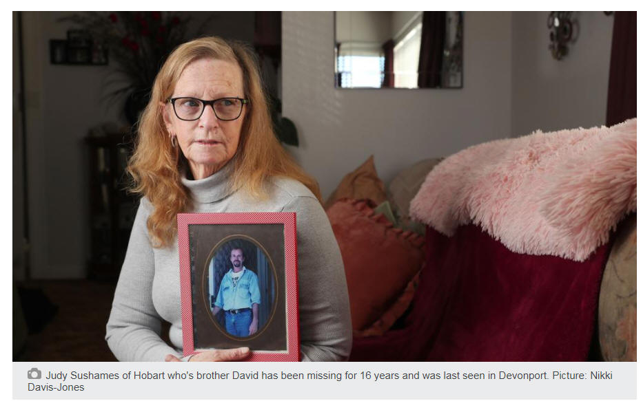David Sushames was 44 when he was last seen at a family member’s Devonport home on Melbourne Cup day on November 1, 2005. His family said his disappearance was out of character and police also suspect foul play.