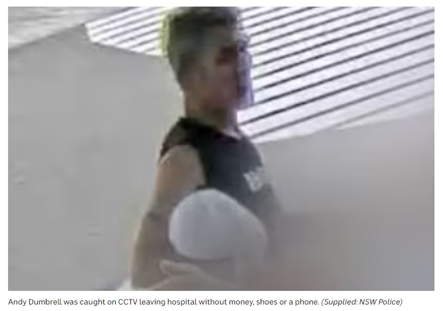 Andrew Dumbrell, aged 35, left Calvary Mater Hospital in Waratah NSW at approximately 9:10 am on 14 January 2025.