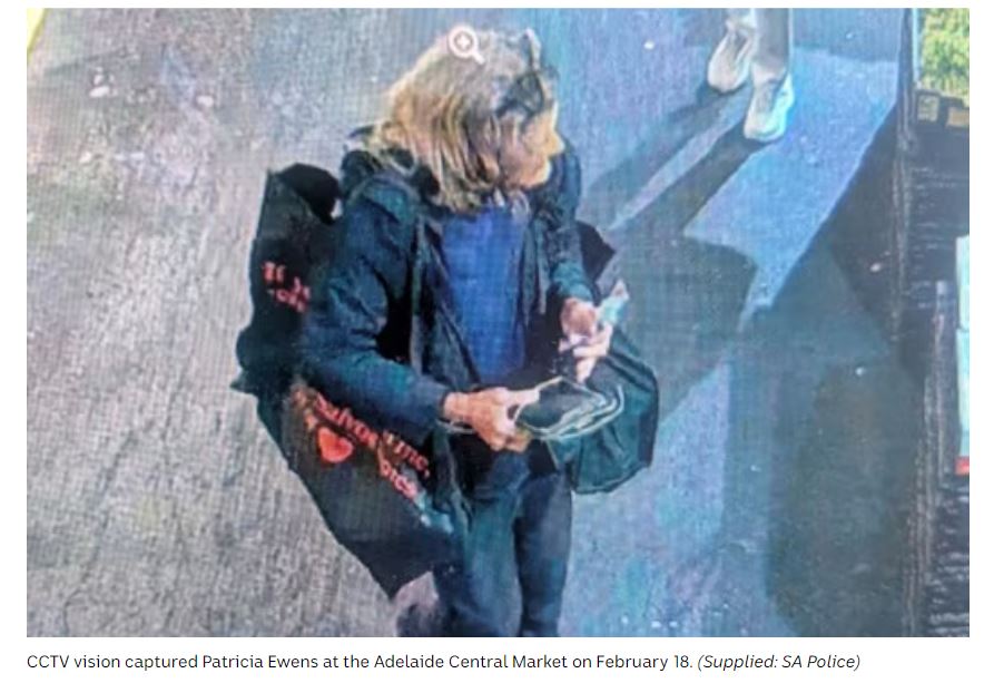 Investigators know that Patricia travelled alone to Adelaide and attended the Central Markets the same day. She was last sighted on CCTV in Grote Street, Adelaide at about 1 pm on Wednesday 18 February.