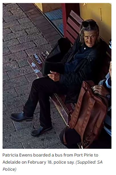 Police believe Patricia left Port Pirie on the morning of Wednesday 18 February after boarding a Stateliner Bus to Adelaide.